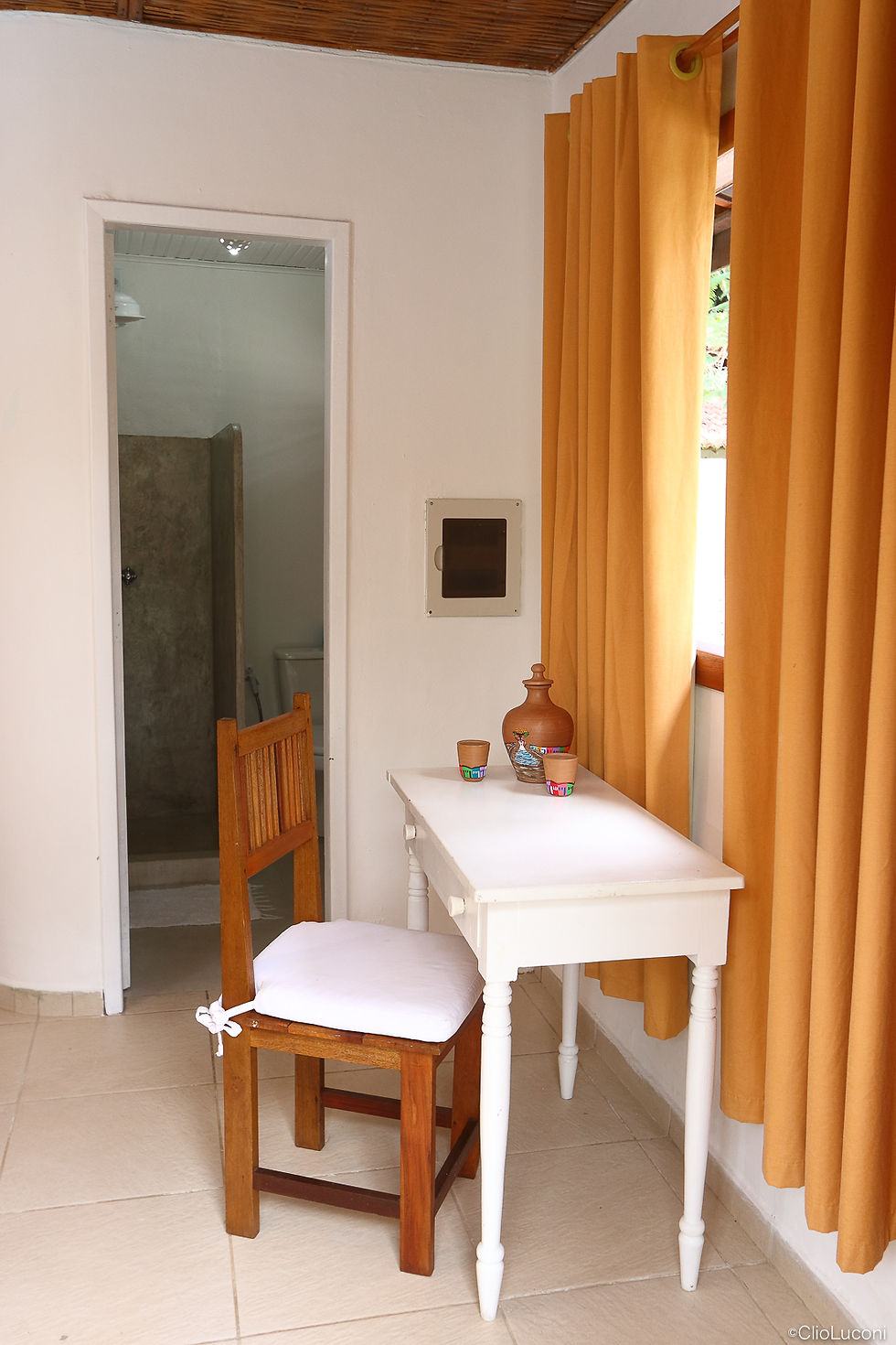 Cama de casal padrão (1,38)Ar-condicionado splitFrigobarTV LCD 32″Cofre digitalBanheiro com secador de cabelosVaranda com vista para jardim